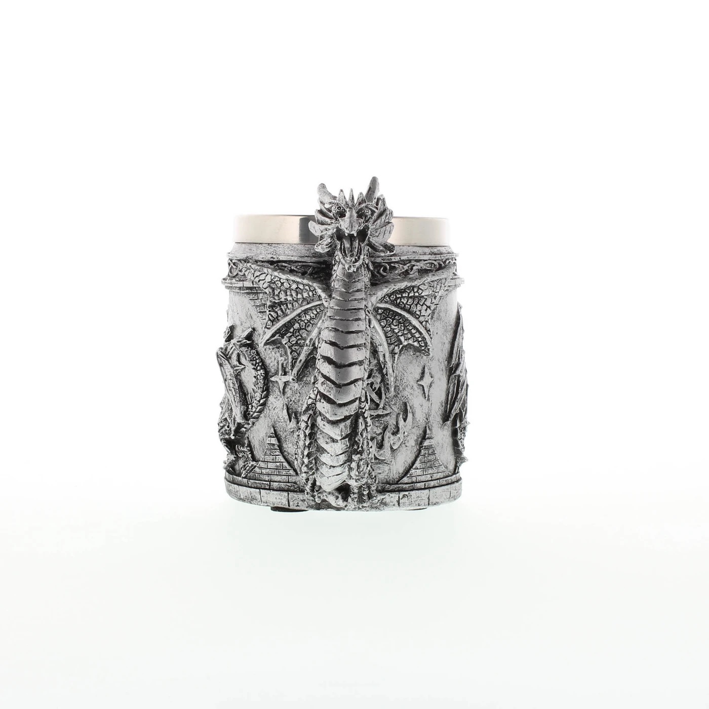 Introducing our premium Stainless Steel Dragon Mug, the perfect blend of durability and style for your beverage needs. Crafted from high-quality stainless steel, this dragon-themed mug is designed to keep your drinks at the ideal temperature while adding a touch of fantasy to your collection. Ideal for coffee, tea, or any beverage of your choice, this mug features an intricately detailed dragon design that is sure to impress. Whether you're at home, in the office, or on an adventure, this stainless steel mug is your go-to choice for a unique drinking experience. Explore the magic and elegance of our Stainless Steel Dragon Mug today and elevate your drinkware collection with this must-have accessory.
