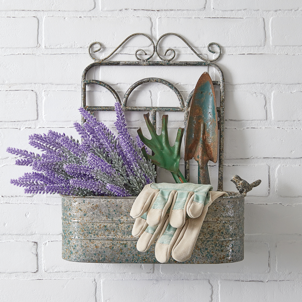 Elevate your garden decor with the elegance of our Garden Fence Wall Planter. Place a potted plant inside and feature your favorite flowers. Item is crafted of metal and is not guaranteed watertight. To hang, use its two keyhole hangers.