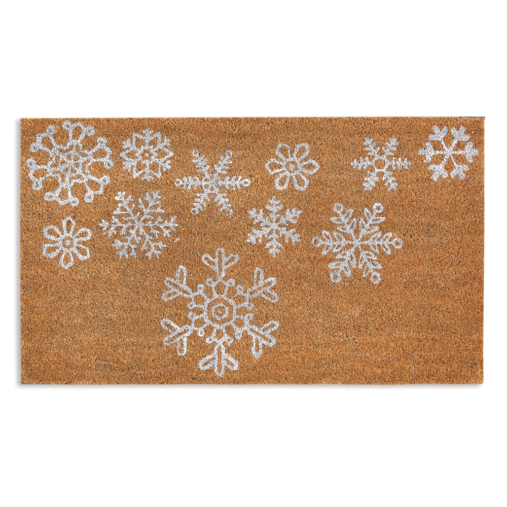 Snowflakes of all different shapes and sizes line this door mat, perfect for winter and Christmas decor! Each mat is designed with colorfast fibers on a slip resistant rubber backing. This makes it easy to knock debris off your shoes when coming in and preventing a fall when the ground is wet. These mats are easy to clean as you simply shake the dirt out. Fibers will come loose as you begin to use the mat which is perfectly normal.