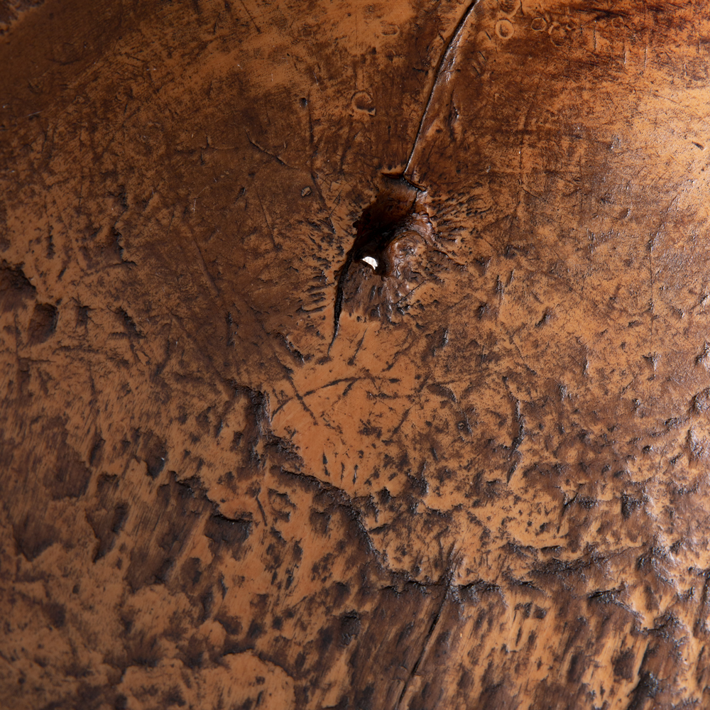 Features a knot that creates a hole in the interior of the bowl. Made of resin. Our Treen is for decorative use and is not recommended for use with unwrapped food.