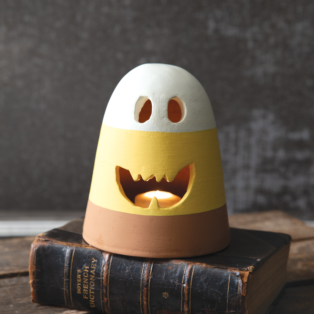 Home > Set of Two Terra Cotta Candy Corn Luminaries